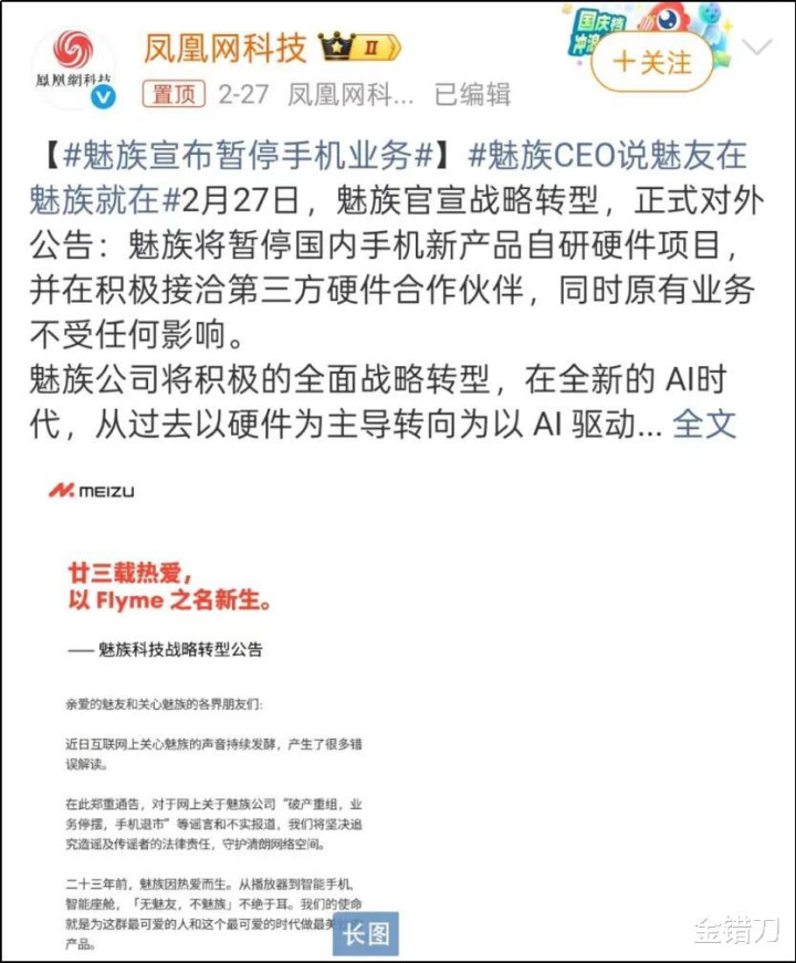 是以,以性价比著称的传音,2025年度营收687亿元,同比下滑不到5%,利润却接近腰斩,同比降幅高达54%;还有魅族,岁首取消了新机上市策动。2月27日,魅族又是一纸公告,负责承认暂停国内手机新家具的自研硬件模样,意义是“近来内存价钱的捏续暴涨,让下一步新家具的肤浅买卖化酿成了不可为”。
