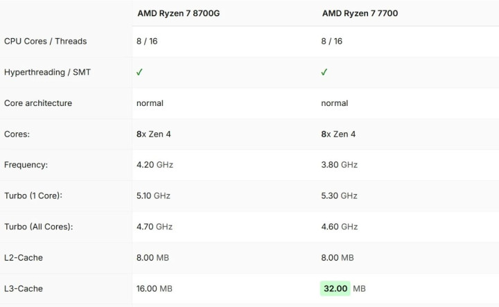 8700g其实等于7000系锐龙加上780M核显,制造工艺从5nm升级到4nm后,再砍掉一半三缓存。用的是ZEN4架构。你以为砍结束吗,莫得,pcie5.0左迁为pcie4.0,这还不够通说念数从24条再砍到20条,这才是宝刀归鞘,完成切割,刀马齐得拜师苏妈。8700G的性能比9700X低20%,比7700低5%