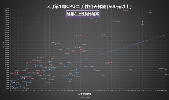 那统共8000系就全是垃圾吗?也不是。唯二的良心等于8700F和8400F,和同等第的7000系性能差距5%驾御,单说性能完全不错领受。再看价钱那就只可选用8400F了,况且这个CPU我认为是8000最值得买的一个cpu,同期亦然举座AM5接口初学最顺应的一个cpu,完胜7500F。从性价比天梯图上也能看出来。