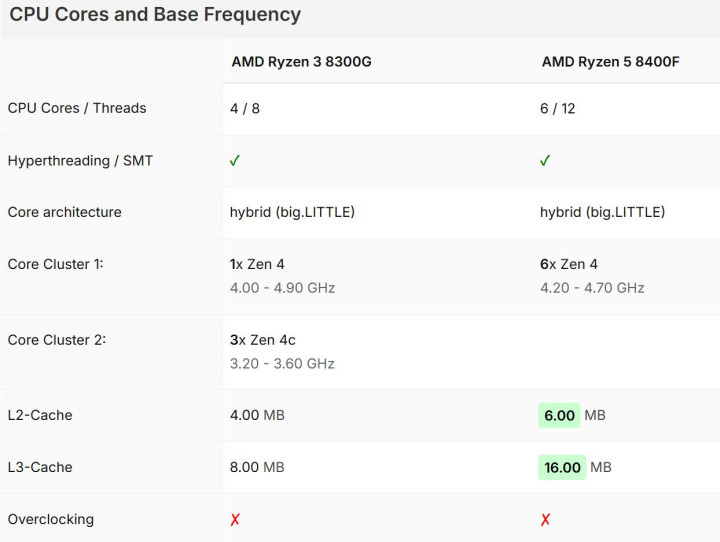 再往下的产物竣工展现出了AMD的恶龙方式,8500G,你以为是6中枢,但其实换成了2个ZEN4大中枢4个ZEN4c小中枢,核显接续阉割到740M,