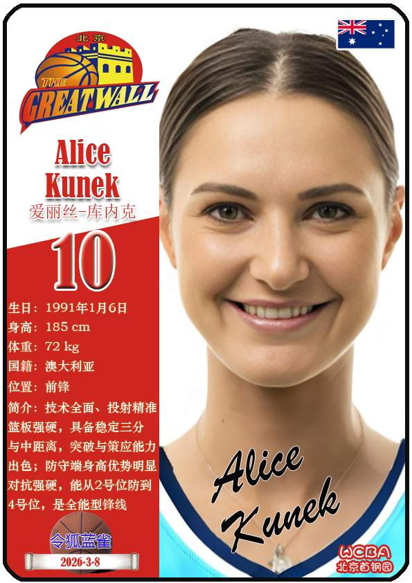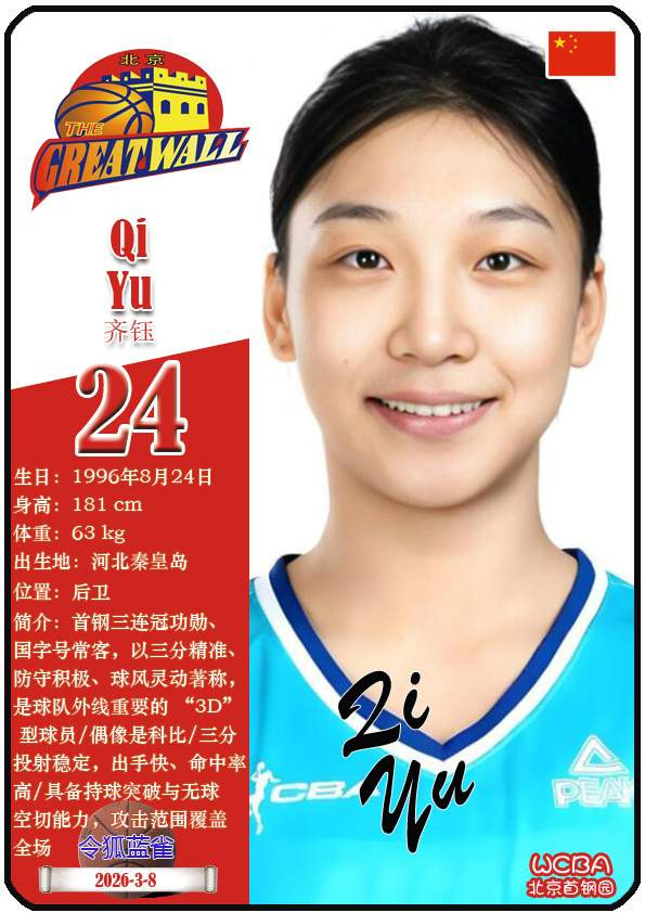 北京首钢园女子篮球队开垦于1956年,距今已有70年历史。现在球队主老师是李翔,队内领有球员凯-阿菲-詹姆斯、爱丽丝-库内克、蒂芙尼-米切尔等。本期盘货现在收尾2026年3月8日WCBA北京首钢园女篮的18名球员(按球衣号码排序):