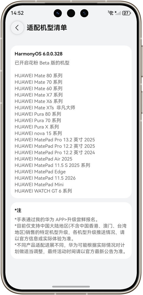 此外,HUAWEI WATCH GT 6系列智高腕表不异守旧这次Beta版测试。